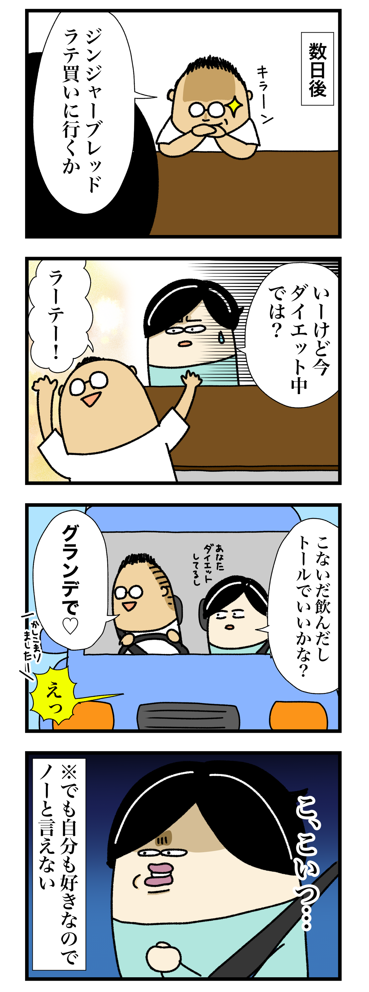2023年11月23日 スタバのアレ、夫に飲ませて大後悔 ブログネタ:【公式】毎年楽しみにしているイベント に参加中! 大好きなんだけど、そうそう毎週飲むものでもないというか…(お値段もありますし…)現在ダイエット中の夫にとって、久々の甘い飲み物は効いてしまったようです。ハマり症なので、不安…私よりハマっちゃダメだろ…ダイエットで変わったこと ほぼ毎日更新していますのでポチッとお願いします!