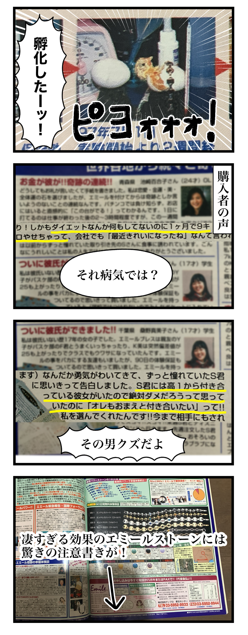2024年01月26日 平成のトンデモ広告発掘!②【完】 前回の続きです 隅々まで気合いの入ったエミールストーン!めっちゃ気になって検索してみたら、天下のGoogle先生でも何も出てこなかったよ!令和の地球上には存在しないパワーストーンだった!!神秘的だぜエミールストーン!!! スポンサードリンク 「日常」カテゴリの最新記事