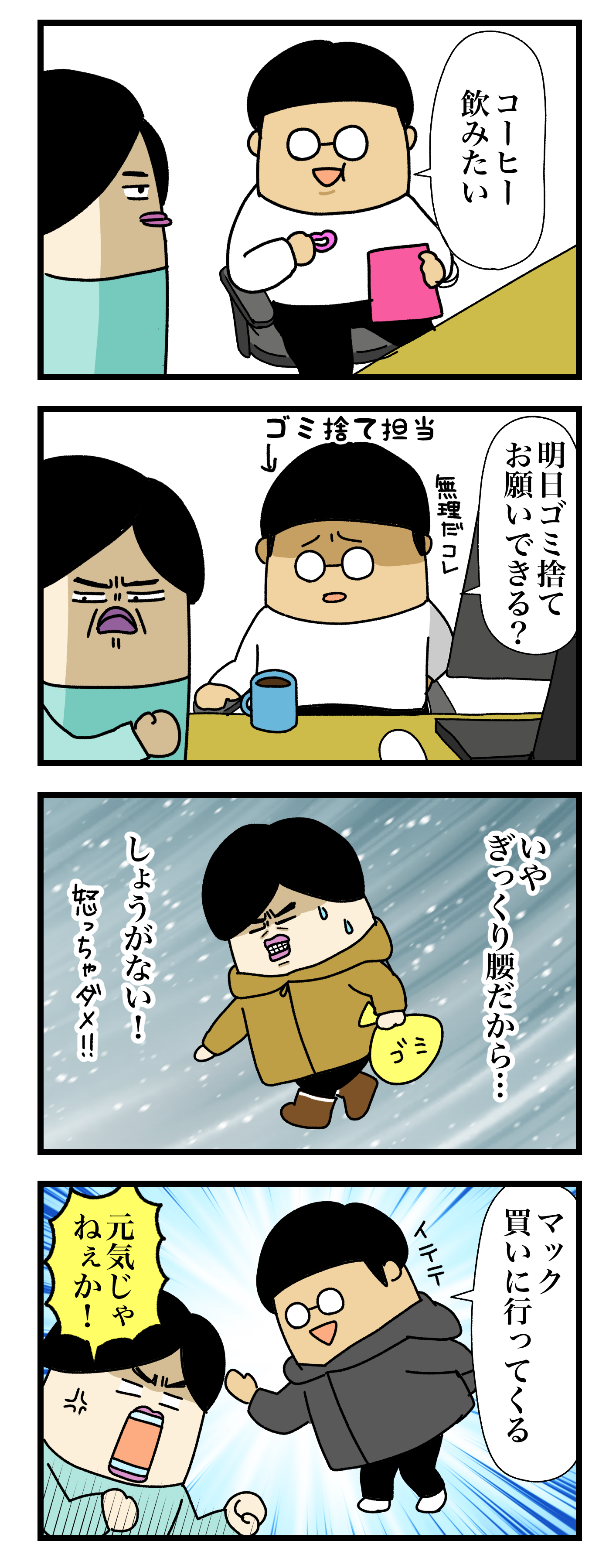 2024年01月18日 最悪のタイミングでぎっくり腰② 前回の続きです め、面目ない…雪かきにも色々と段取りがあるそうで普段全くやらない私は足手まといにしかなりませんでした…かわりに暖かいコーヒーを淹れました…続きです 私が痛めた話 ほぼ毎日更新していますので、ぜひポチッとお願いします!