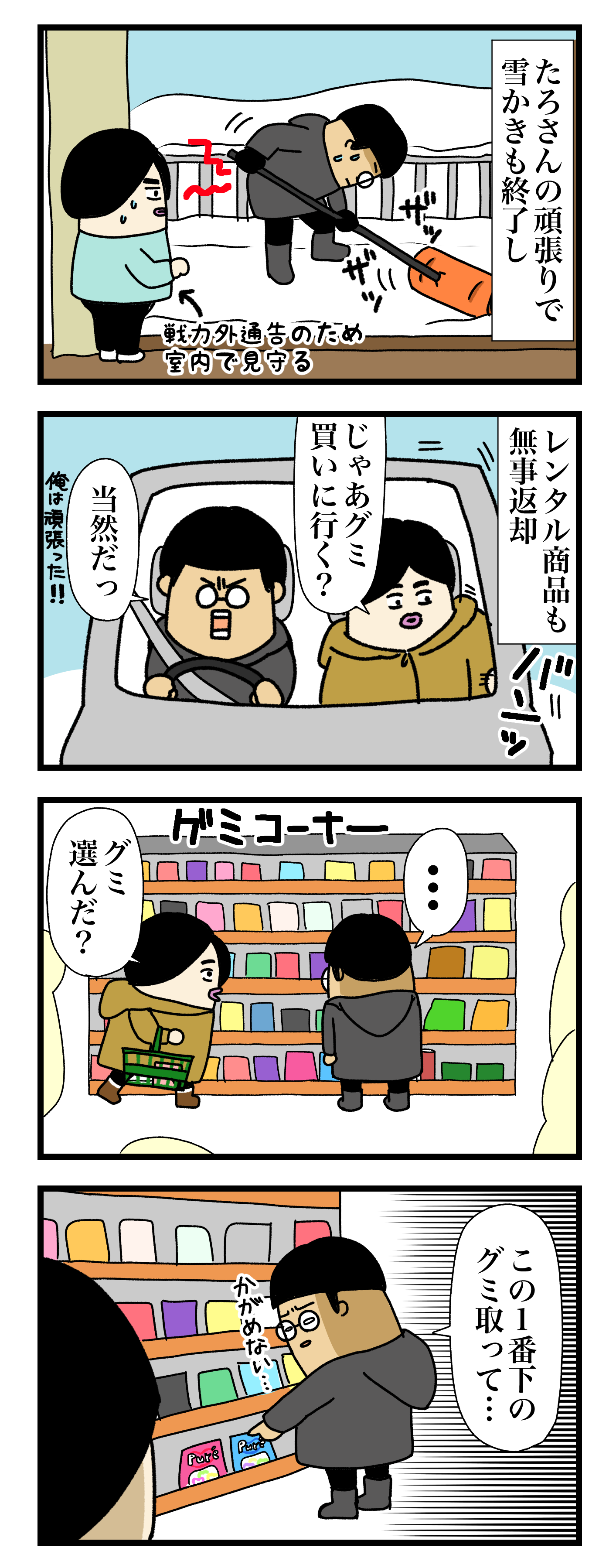 2024年01月17日 最悪のタイミングでぎっくり腰① 明るい気分を盛り上げるために言ったんだろうが!!その後調べたところ、軽いぎっくり腰でした。(歩けるので重症ではない)よりにもよってたくさんレンタルしちゃってる日(漫画9冊)だったので、なんとかして返却しに行かねばと思ったのでした。次回、役たたず(私)が雪かきに挑みます。続き 北国の冬話↓ ほぼ毎日更新していますのでぜひポチッとお願いします!