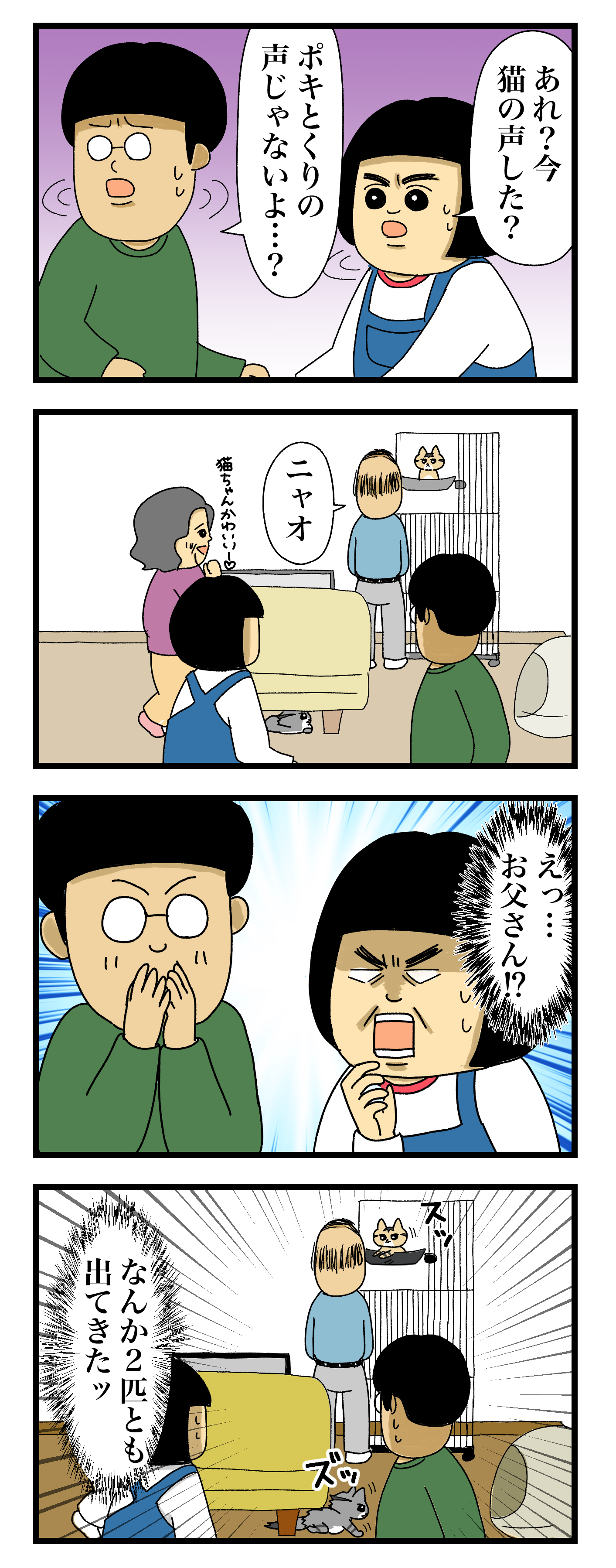 2024年05月04日 寡黙な父と子猫の初対面 初めて知った父の特技…実は最強の猫おじかもしれん(ちなみにポキが持ってる緑の物体はアクリルタワシ。キッチンから強奪してしまうので、今は隠しています…)父の話 日常漫画と猫漫画を中心にあげています。ポチッとして頂けたら狂喜乱舞します! スポンサードリンク 「日常」カテゴリの最新記事